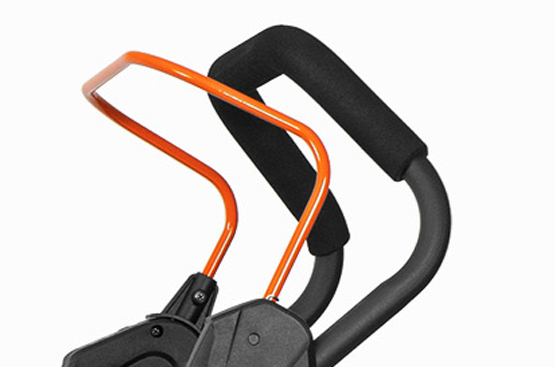 Рукоятка газонокосилки регулируется для выбора оптимальной высоты в зависимости от роста человека, использующего газонокосилку.